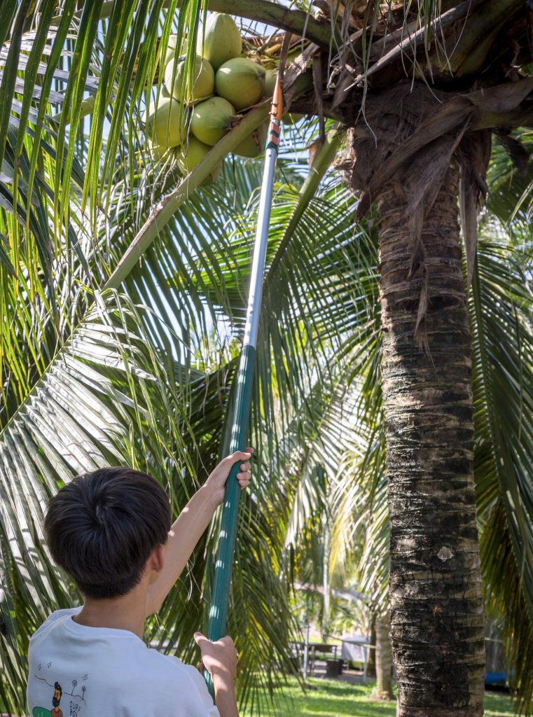 Experience the essence of rural life with our farm tour at The Coco Journey on every Saturdays and Sundays from 10:00 am to 11:00 am! Witness firsthand the traditional methods our skilled workers use to harvest coconuts and learn about the various stages of coconut cultivation. Then, it’s time to quench your thirst with nature’s bounty as you indulge in freshly cut coconut water—prepared by punching a hole in the coconut yourself! To complete the experience, roll up your sleeves and chop open the coconut to savor its delicious flesh, harvested straight from our farm. Don’t miss this unique opportunity to connect with nature and taste the true essence of farm-fresh goodness.